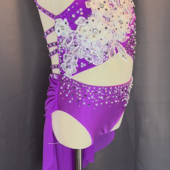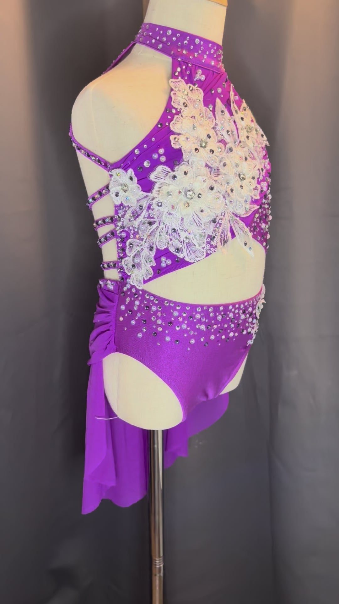 Step into a world of magic with Enchanted Violet, a stunning purple lyrical dance costume in US size 6. Sparkling embellishments catch the light with every movement, creating a radiant shimmer that enhances leaps, turns, and lyrical choreography.