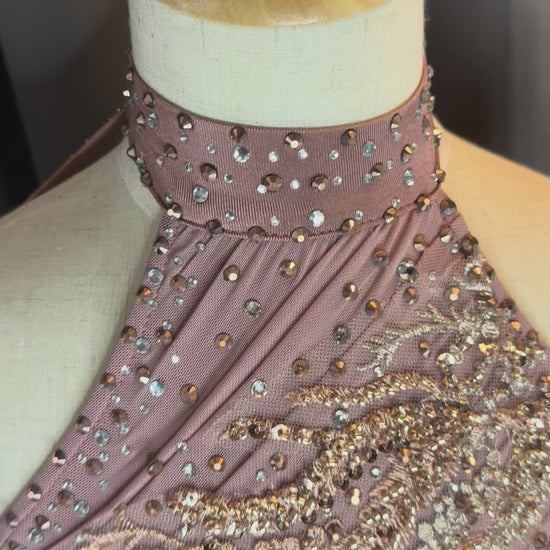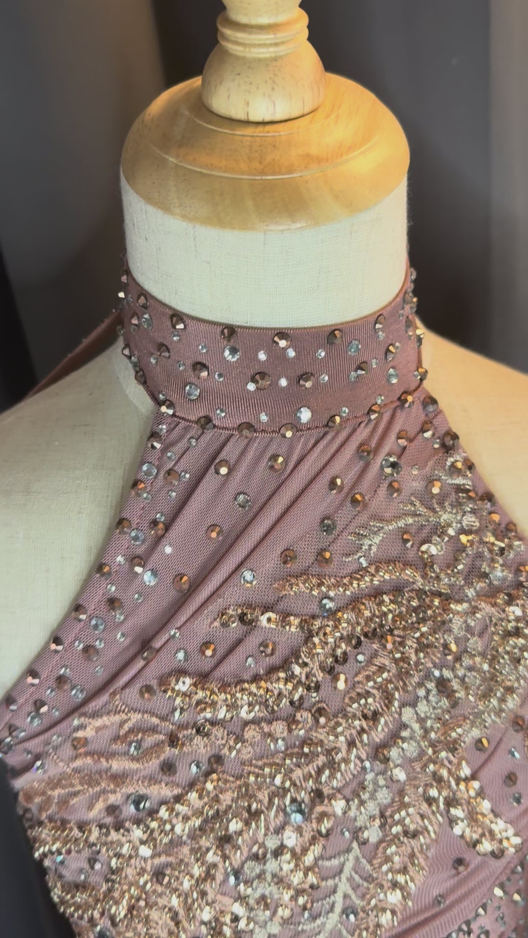 Gilded Grace – Rose Gold Lyrical Dance Costume with Rhinestone Embellishments (US 6)