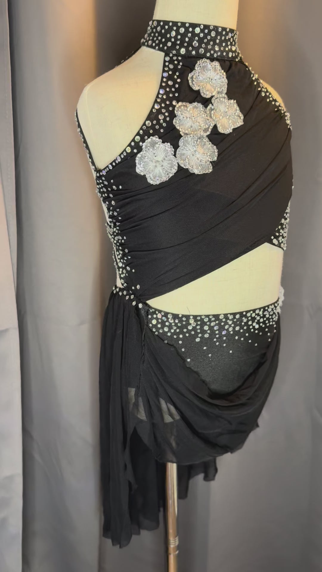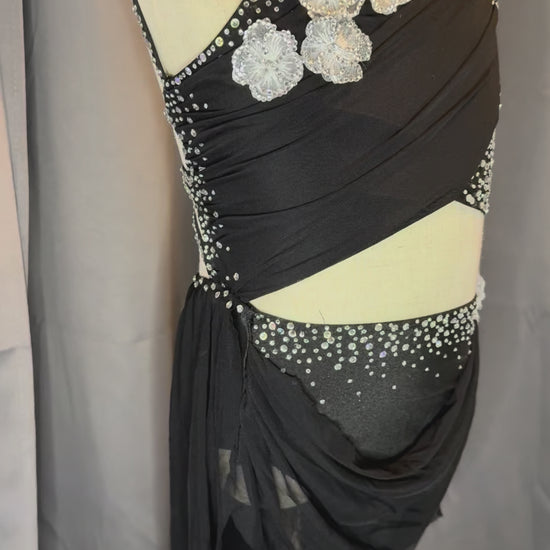 Onyx Enchantment – Black Rhinestone Floral Lyrical Costume (Size 6)